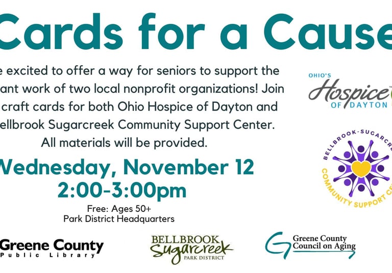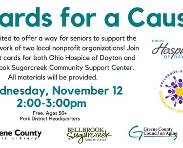 I will be helping seniors support the work of two local nonprofit organizations! Join me as we craft cards for both the Ohio Hospice of Dayton and the Bellbrook Sugarcreek Community Support Center. All materials will be provided.
