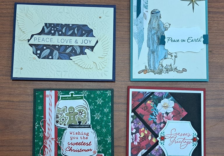 Come make a few cards. At least 4 cards will be offered, and at least one will be a Christmas Card. Come make as many or as few as you wish.
